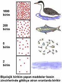 ·Biyolojik birikim (Kimyasal zehirler,radyoaktivite vb.) tepeye doğru gittikçe artar